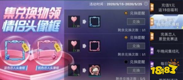 只要能够拿到20枚爱心气球就可以兑换到其中一款的新推出的纪念情侣头像框了,但注意兑换仅限2选1。