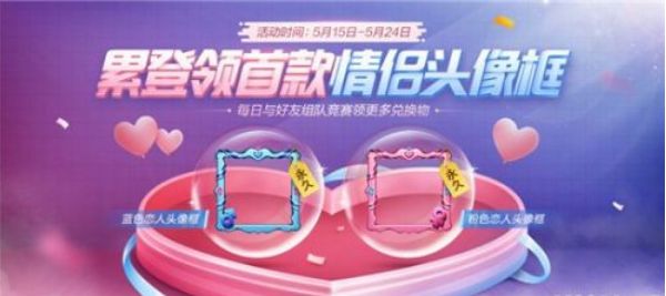 5月15日-5月24日,累计登录6天及每日完成竞赛任务,收集爱心气球兑换物,即可兑换永久完美恋人头像框(从蓝色和粉色中2选1进行兑换)