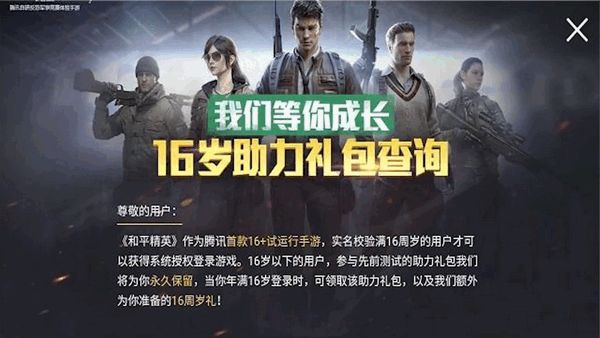16周岁以下的玩家无法登陆和平精英。而16周岁以上的玩家,不能持续登陆游戏超过2个小时,超时后会限制登陆。18周岁以上的玩家,持续登陆超过7个小时,也会有限制。