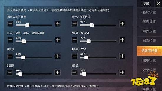 开火镜头灵敏度:不开镜95% 、2倍镜 70% | 全息、红点、机瞄:65% | 3倍镜:60%、4倍镜:50% | 6倍镜:40%、8倍镜:35%