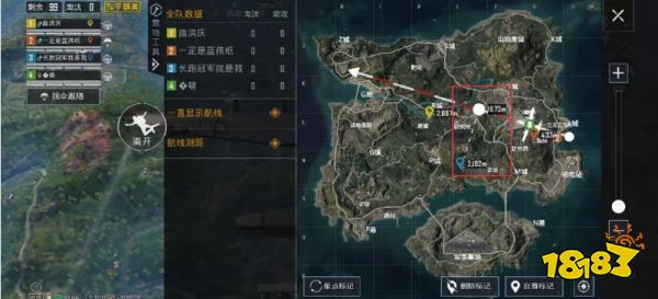 开启营地工具后,特种兵在跳伞之前,点击地图上任意点,生成一条垂直于航线的虚线,并显示距离(精确到米),方便特种兵们精准跳伞。