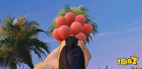 在活动海岛地图中,出生岛变为了爱心岛,跳伞走到电音舞台上(PS:很好分辨,就是左右各有一个RGB箱子的舞台,小地图上看就是个带电图标),朝着上方看会发现三个升天的绿色气球。