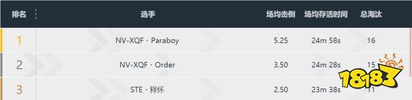 相比之下,虽然NV-XQF战队在场均存活时常中并不突出,但这并不能代表什么。
