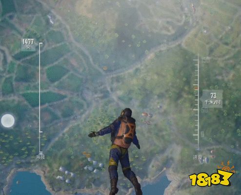 在这里,98K有一个细节要告诉大家。根据98K的观察,多数情况下战斗热区都会刷新在航线附近,当我们距离落地点约750米左右时,使用“斜飞速降”进行跳伞,可以大大减少落地所消耗的时间哦!