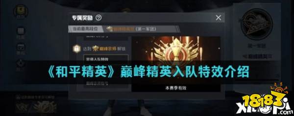 《和平精英》游戏中巅峰精英入队特效怎么样?和平精英开启了全新的巅峰赛玩法,其中巅峰赛段位很多小伙伴表示不知道怎么提升,那么接下来小编为大家带来《和平精英》巅峰精英入队特效介绍,一起来看看吧。