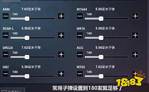 常用子弹设置180发左右,狙击枪子弹设置30发即可。