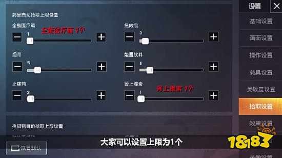 在诸多的药品中,全能医疗箱和肾上腺素是比较占空间的,但两者的作用都比较大,所以大家可以将它们的拾取上限设置为1个。
