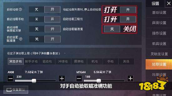 我们需要开启收起拾取列表时停止自动拾取、自动拾取三级包功能,并且关闭自动拾取瞄准镜功能。