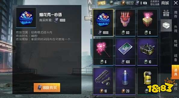 打开游戏中的商城道具之后,你会发现出现了4个烟花,而且礼盒里也同样出现了“烟花礼盒。
