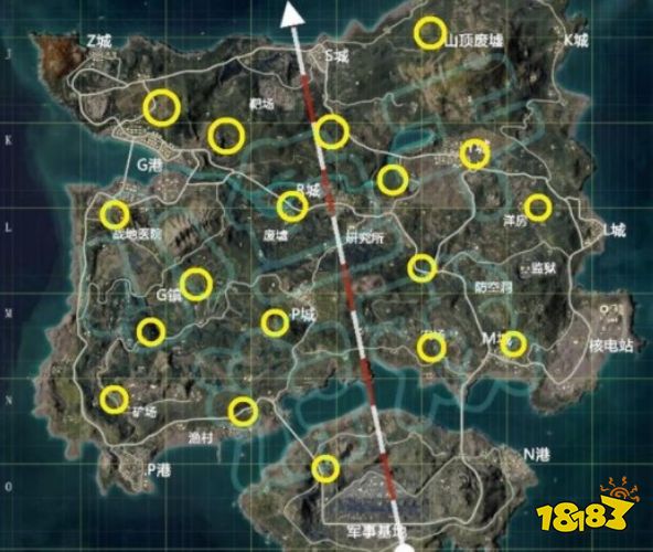 上图中就是在海岛地图中撤离碉堡的位置分布了,可以看到在机场的位置只有一个撤离碉堡,所以在这个模式中跳机场将会更加考验玩家们的操作。
