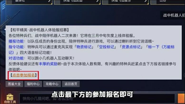 和平精英战中机器人也不是人人都能体验到,总是能通过报名审核才能获取资格。