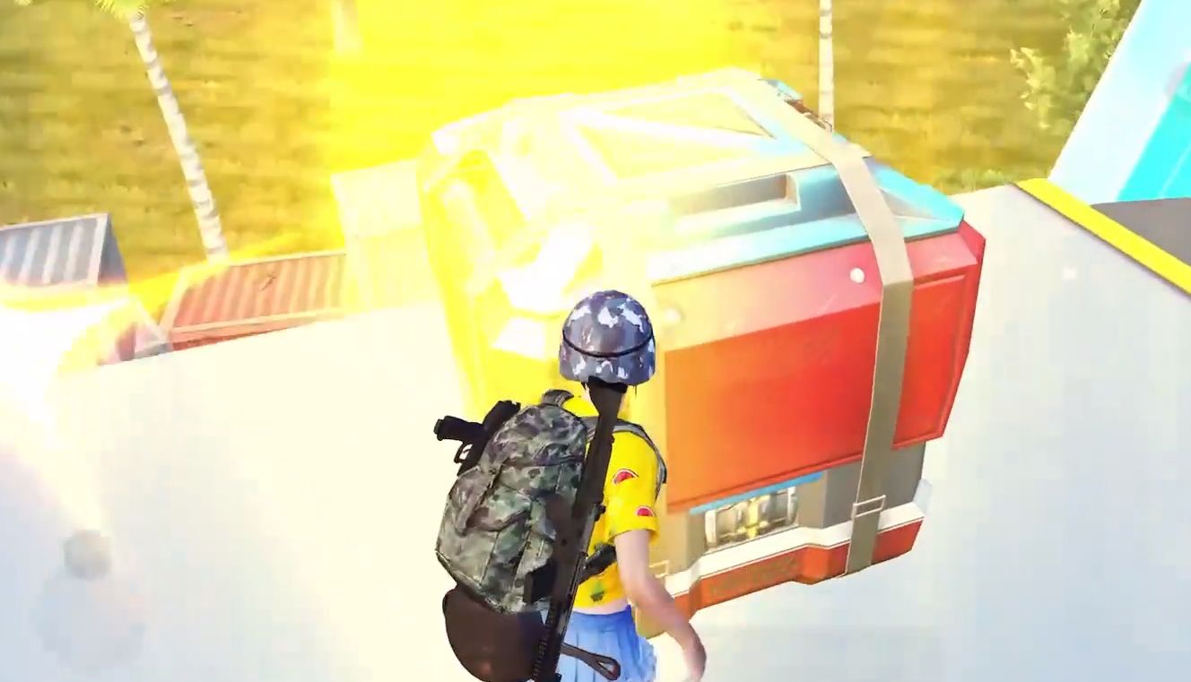 我们进入游戏之后,可以去舞台最顶部寻找第一把枪,跳到伞上就能够飞上去了。然后我们在上面就可以看到一个宝箱,这个宝箱特别大,枪就藏在里面了。我们打开之后,就只能发现一把夏日信号枪,除了这件东西就没有其他物品了。想要发射的话,我们需要去寻找空旷点的地方。