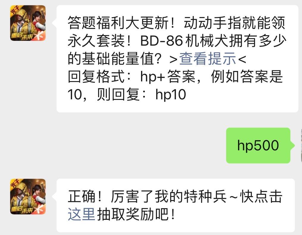 BD-86机械犬拥有多少的基础能量值?相信不少玩家都不知道这个问题的答案吧,下面就一起来和183小编看看和平精英7月2日每日一题答案分享吧。