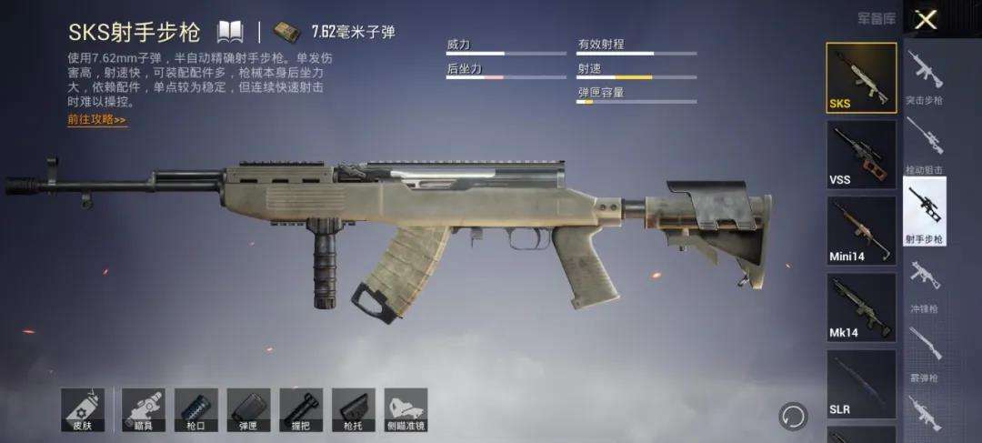 和平精英中的枪支种类非常多样,每一把都有其自身的特性。而其中SKS作为和平精英中的射手步枪,在近战时搭配合适的配件也会有不错的战力哦,这一点你知道吗?下面就让我们一起来了解下和平精英中SKS的机械使用技巧吧。