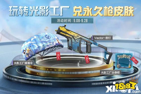 此次光影工厂活动将于9月8日—9月28日限时开放,七大活动逐步开启,只要参与活动完成任务,就可以获得海量光影福利碎片,兑换炫酷枪械皮肤Vector-夜灯(永久)以及光影工厂降落伞(永久)。白给的永久枪皮,特种兵们一定要记得参加这次活动哦!