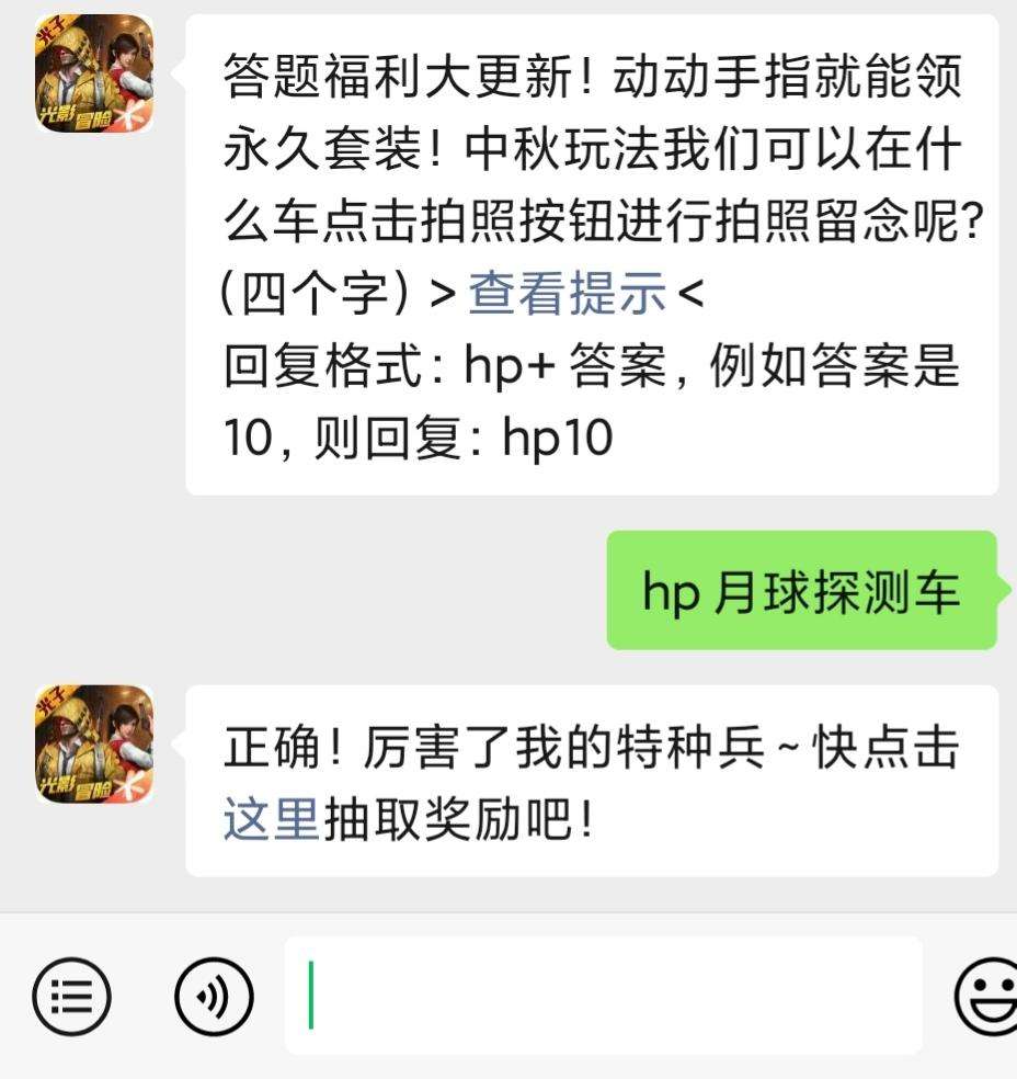 中秋玩法我们可以在什么车点击拍照按钮进行拍照留念呢?应该有很多小伙伴不知道这个问题的答案。今天小编就为大家带来和平精英9月17日微信问答每日一题的答案。