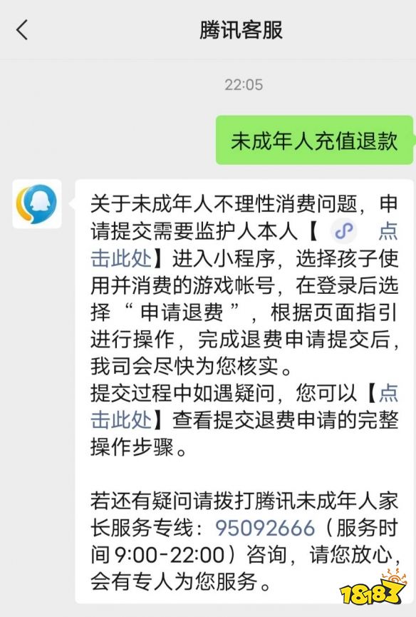 1、打开微信找到「腾讯客服」,发送关键词“未成年人充值退款”等待回复。