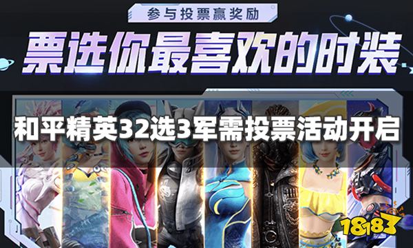 和平精英32选3军需投票活动时间10月25日-10月27日,活动期间在和平精英营地评论区以想要为关键词,留下时装序号或时装名称,每人可在评论区投票3套不可重复,计入活动抽奖。