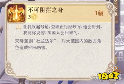 天降圣剑“杜兰达尔”,对大范围内的敌方角色造成87%伤害。