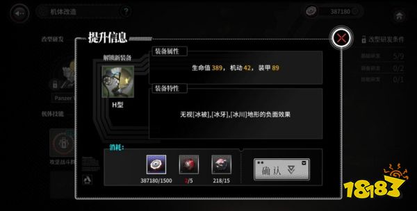 每种人偶都会拥有图中所示的改造树,改造还会为人偶带来新的装备,右上角则是改型研发条件