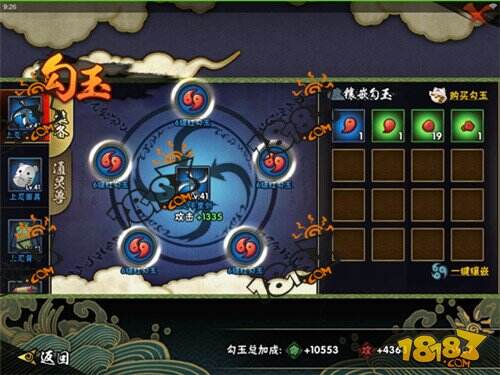 勾玉的提升效果相对来说也比较不错,但因为获取困难,所以只能屈居第二。通过修行之路能够获得少量1级勾玉,而想要佩带更高等级的勾玉,则需要金币在商城购买。平民玩家可以把每天奖励的金币都换勾玉,来提升战力。
