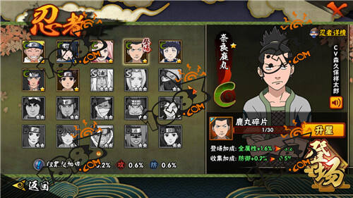 这里以平民党忍者鹿丸为例,土豪党就不多说了,战力碾压,无需攻略。