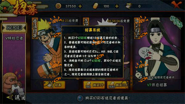 1、购买1个幻彩石赠送1次招募忍者的机会。