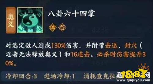 宁次的奥义“八卦六十四掌”,光听名字,就有一股浓浓的玄学气息。我滴妈,这130%的伤害能将小吉大卸八块。