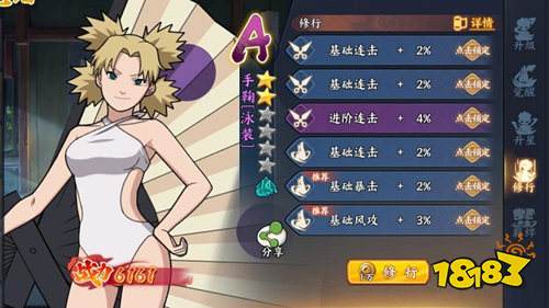 手鞠由于有两个放大忍术的被动,因此修行忍术的收益是最大的。泳装被动效果放大1.3倍,也就是玩家修行出10%的忍术会得到13%的效果,配合养成被动收益还会进一步提高。手鞠的技能非常依赖连击的关系,连击也是我们优先考虑得对象。然后就是暴击了,这个游戏的暴击伤害是非常高的,输出单位不可错过暴击。