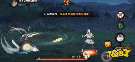 由于纲手[百豪]会在受到伤害后使用替身进行反打,我们在挑战关卡时就需要进行灵活的走位,以防她的攻击命中,浪费输出机会。尤其是当她被打至屏幕之外的时候,我们将无法预测敌人行动,在此时还是小心为妙!