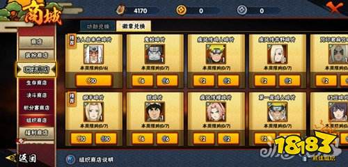 得到宝箱中的徽章后可以在组织商店中兑换忍者碎片。