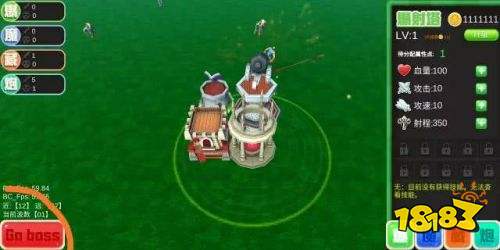 比如说第1层,给每个塔都升5级,才会有“goboss”按钮出现(总级数超过20)