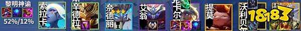 阵容推荐:索拉卡、辛德拉、奈德丽、艾翁、卡尔玛、提莫、沃利贝尔(卡兹克)、盖伦。