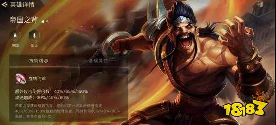 帝骑德莱文—S1最火的体系之一,从技能属性可以看到德莱文的飞斧是倍数伤害并且,配合双帝国还能提升50%伤害,成型的德莱文就是极致的物理输出。