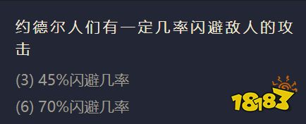 六约德尔人效果:在战斗中约德尔人们有70%的几率闪避敌人的普通攻击。(如下图所示)