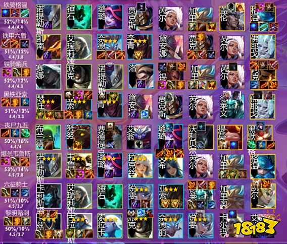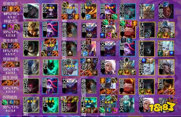 版本S级阵容几乎毫无变化,铁骑破败饮血削弱排名下滑,铁骑神盾排名上升,其他基本上都是上个版本的老牌S级阵容,小炮和刺客现在依旧很冷门哦~神谕九五的缺点就是太贵了,实际上前置黎明卡尔玛并不强,复生18183的缺点也是太贵,不过榜单环境倒是更好了一些。