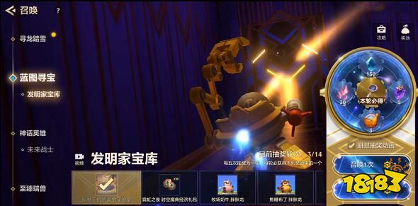 2、蓝图寻宝通过消耗齿轮币,然后打开星晷,打开发明家宝库,获得皮尔特沃夫至宝。