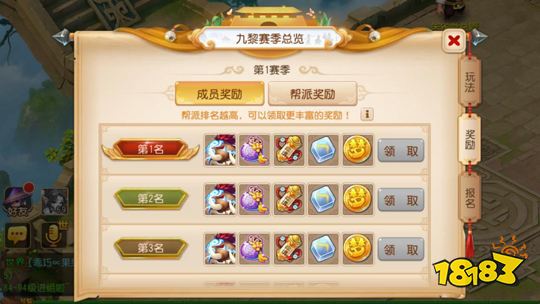 赛季结束时,系统会根据帮派所获得的帮派得分排行并进行奖励结算,而帮派得分与占领的主城和土地相关。根据最终名次,帮派和成员可分别获得奖励,有机会将五宝礼包、金刚定魂礼包、帮战如意锦囊、超级幻色丹、专属坐骑“莽猛犸”、九黎专属称谓等丰厚豪礼收入囊中。