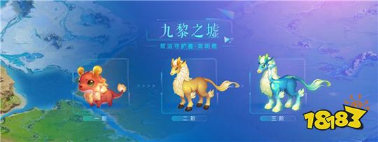 值得一提的是,九黎之墟玩法中,还引入了“帮派守护兽”这一新元素。帮派成员完成相应解锁任务后,守护兽“宵明鹿”就会出现在帮派之中。可以说,守护兽是九黎争夺中不容忽视的关键因素,进阶后的守护兽,将在战斗中给予帮派成员强大的属性加成,让九黎之墟的争夺变得更加燃情与酣畅。