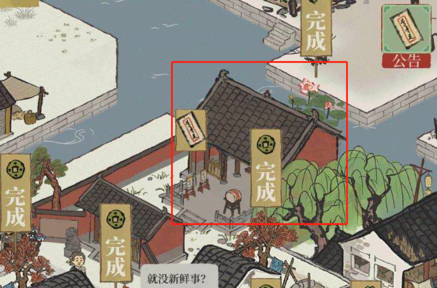 江南百景图公告栏在哪?最近江南百景图开启了满月活动,需要到公告里复制口令再前往公众号兑换,第一次没有复制口令就关闭公告的话可能会找不到活动的页面,以下是公告栏位置的具体介绍。