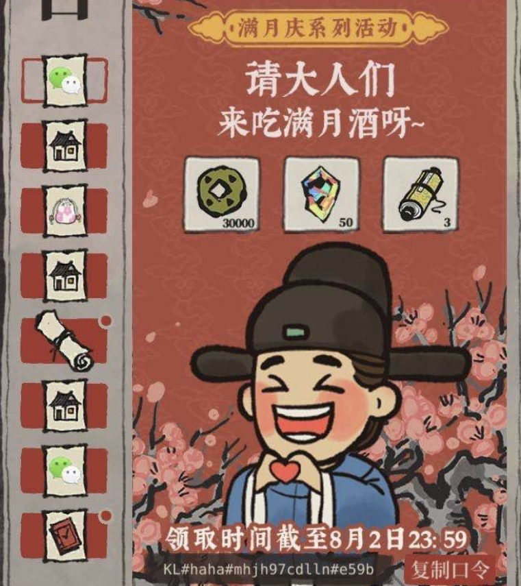 江南百景图有很多活动都需要复制口令之后在微信中领取,点开一次之后就不会显示红点,第一次没有复制口令之后可能就忘了,一定要尽早领取呀。