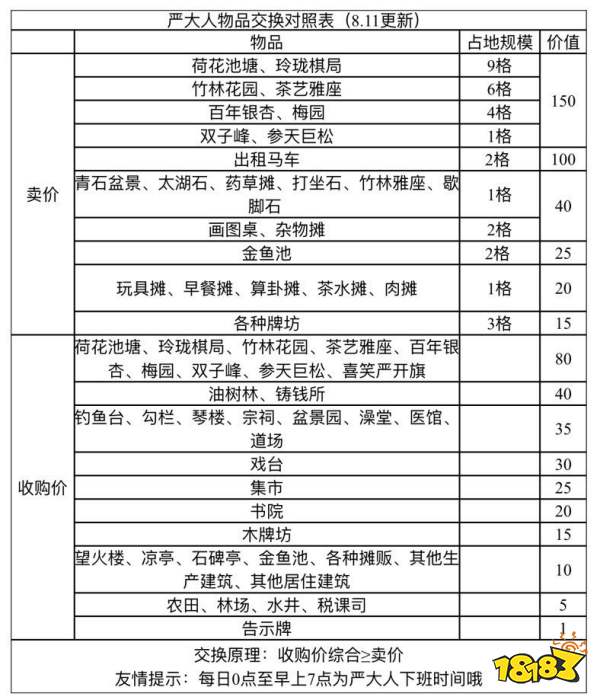 以上就是小编整理的江南百景图严大人物品兑换表介绍,想知道更多相关资讯攻略的请关注18183手游网。