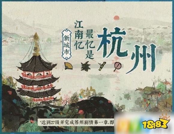 大人们解锁苏州府驿站剧情,同时游戏等级需满足≥27级,即可进入杭州府。