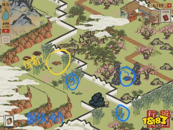 18. 清理5个石边花丛(准备鸟食,再采些小野果)