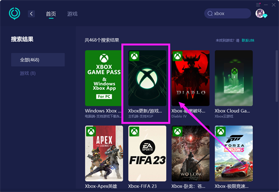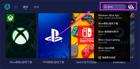 第三步:在搜索结果中可以找到【Xbox更新/游戏下载】点击开始加速。