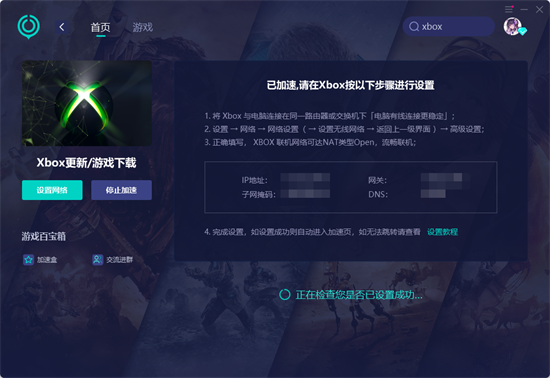 第六步:设置完成后就能连接上加速网络了,这时候就可以成功连接上Xbox服务器,开始进行同步云端就能解决Xbox同步云端报错的问题了。