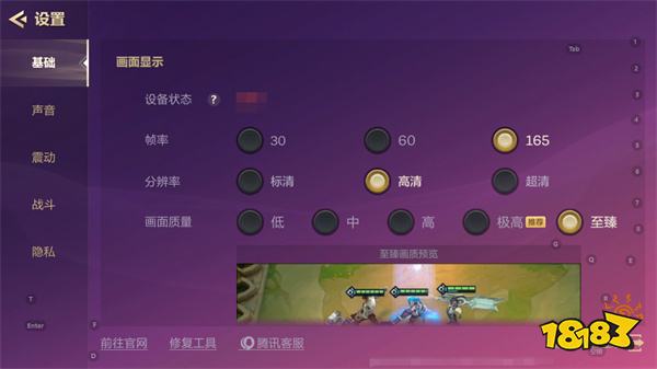 第六步:在【基础】—【画面显示】中,选择165帧率,完成设置后,就可以享受165超高帧率带来的极致视觉体验了。