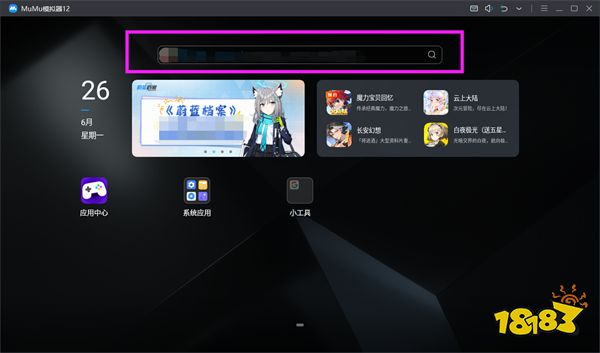 第一步:启动MuMU模拟器12,点击上方的搜索栏,可以进行游戏搜索。