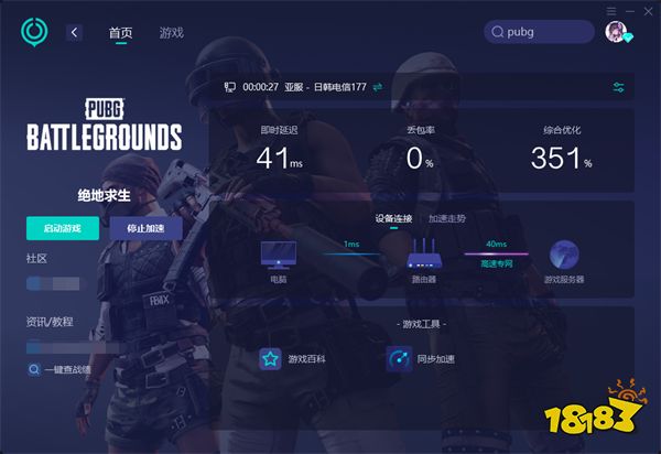 pubg进不去最常见的原因,就是没有开加速器,因为pubg目前还没有供国内玩家专用的游戏服务器,玩家直连很容易进不去游戏,使用加速器后就可以进入了,目前比较推荐用UU加速器,UU的加速效果比较好,而且非常稳定,不容易出现跳ping,丢包等问题,搜索并加速pubg后,重新启动游戏,就可以正常进入游戏了。
