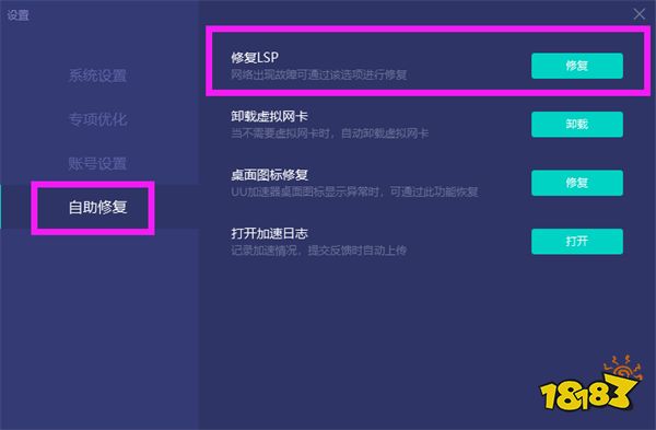 玩家网络异常会导致正常进行网络连接与数据传输,从而出现进不去游戏的情况,这个问题也可以用UU加速器解决,在UU加速器设置中,配备有【自动修复】功能,点击【自动修复】中的【修复LSP】就可以一键为玩家检查并修复网络异常情况了,完成网络异常修复后,重新启动游戏即可。